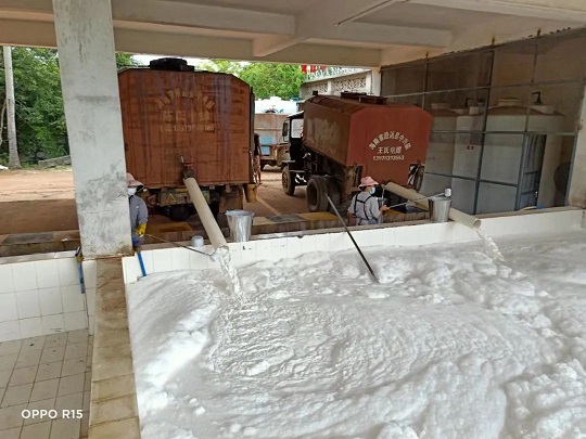 疫情期間膠水運輸極為不暢,很多基地分公司膠水擱置多天。對于這些膠水,金橡公司積極對接基地分公司和民營膠客戶,指導原料保鮮工作,提供保鮮劑,區域外的通過電話、微信方式指導原料保鮮工作。膠水原料拉到加工分公司后再進一步做特殊工藝保鮮及加工生產,保質保量完成因疫情影響不能及時運輸的原料加工工作。