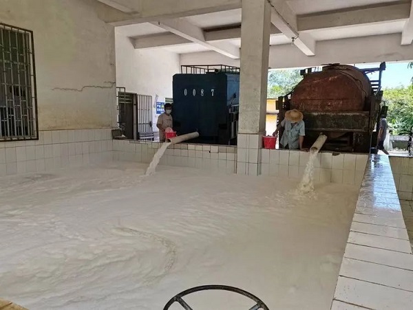 8月27日,是疫情發(fā)生以來(lái)西培分公司橡膠復(fù)割復(fù)產(chǎn)的第一天,符振瑤帶領(lǐng)西華派駐組全體員工一邊做好疫情防控工作,一邊狠抓干膠生產(chǎn)不放松。當(dāng)日西華派駐組共完成干膠生產(chǎn)18.6噸。