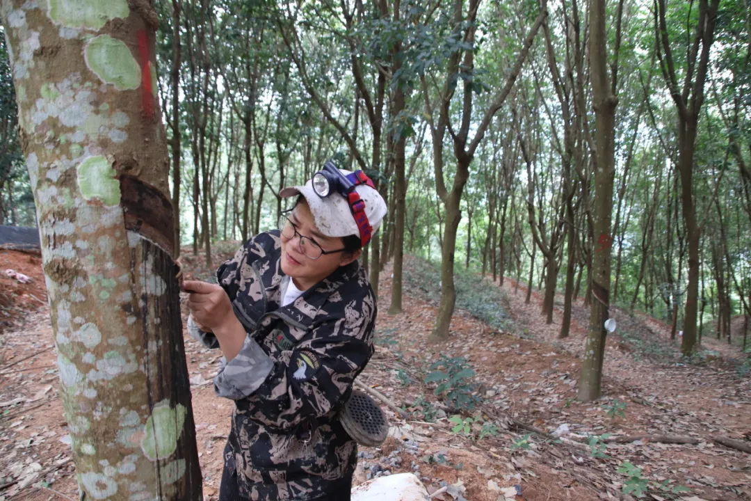 我是海膠集團保國分公司13隊膠工曾湘湘,是農墾第二代職工子女。2004年初,我回到生我養我的故鄉,接過爸爸媽媽手中的膠刀成為一名割膠工人,從此就與橡膠樹結下了不解之緣。